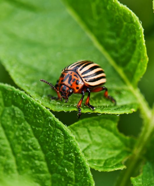 Der Kartoffelkäfer – ist berüchtigt für seine Fähigkeit, Resistenz gegen viele Insektizide zu entwickeln und gilt daher als einer der schwierigsten Gartenschädlinge im biologischen Pflanzenschutz.